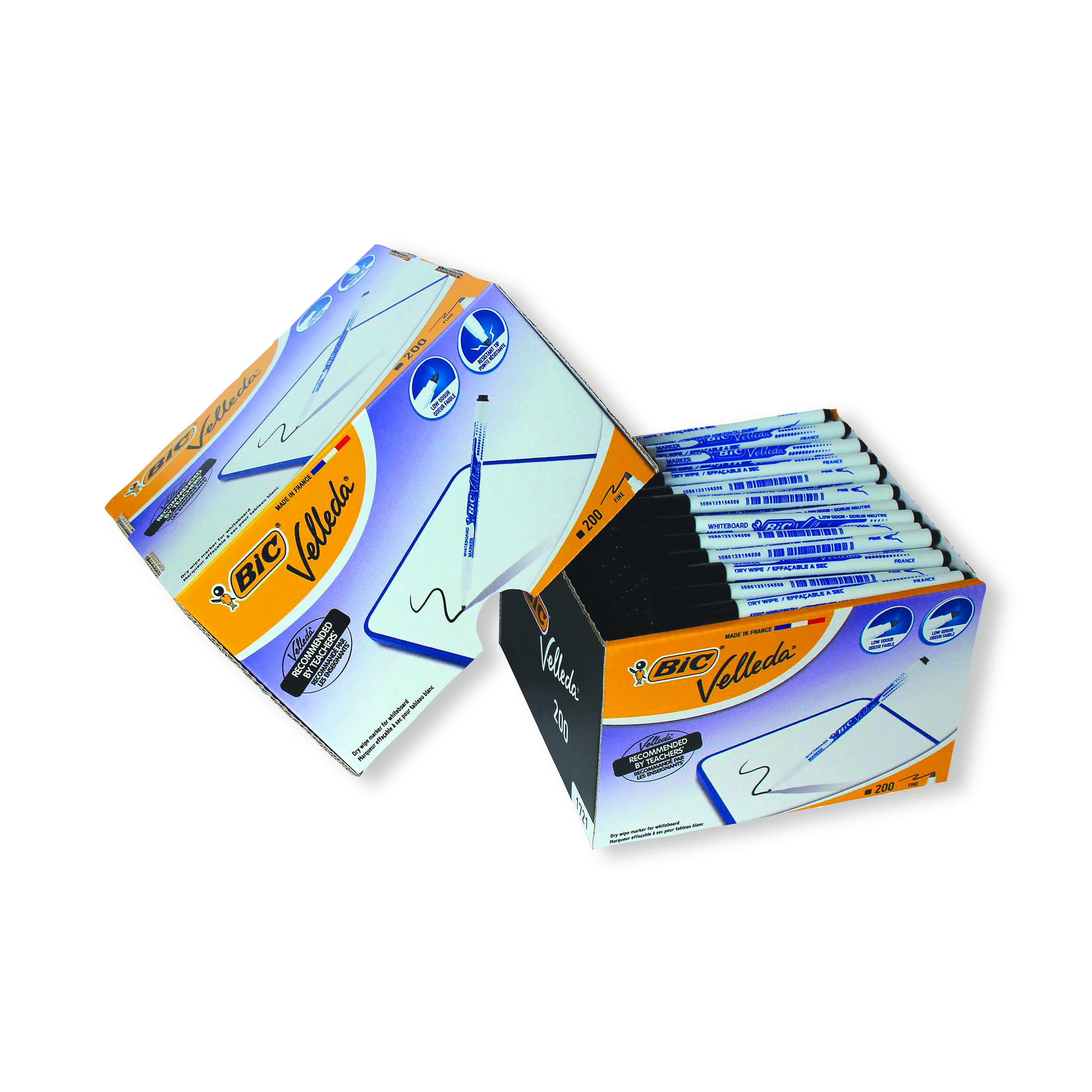 These Bic Velleda 1721 Drywipe Markers provide premium writing and sketching performance with your drywipe whiteboard. The alcohol-based ink glides on smoothly and erases just as easily, and is low odour. The markers feature a strong acrylic tip that won't bend or retract into the barrel, even with heavy use. The fine bullet tip delivers a 1.4mm line width, perfect for small text and detailed whiteboard work. This bulk pack contains 200 markers with black ink.