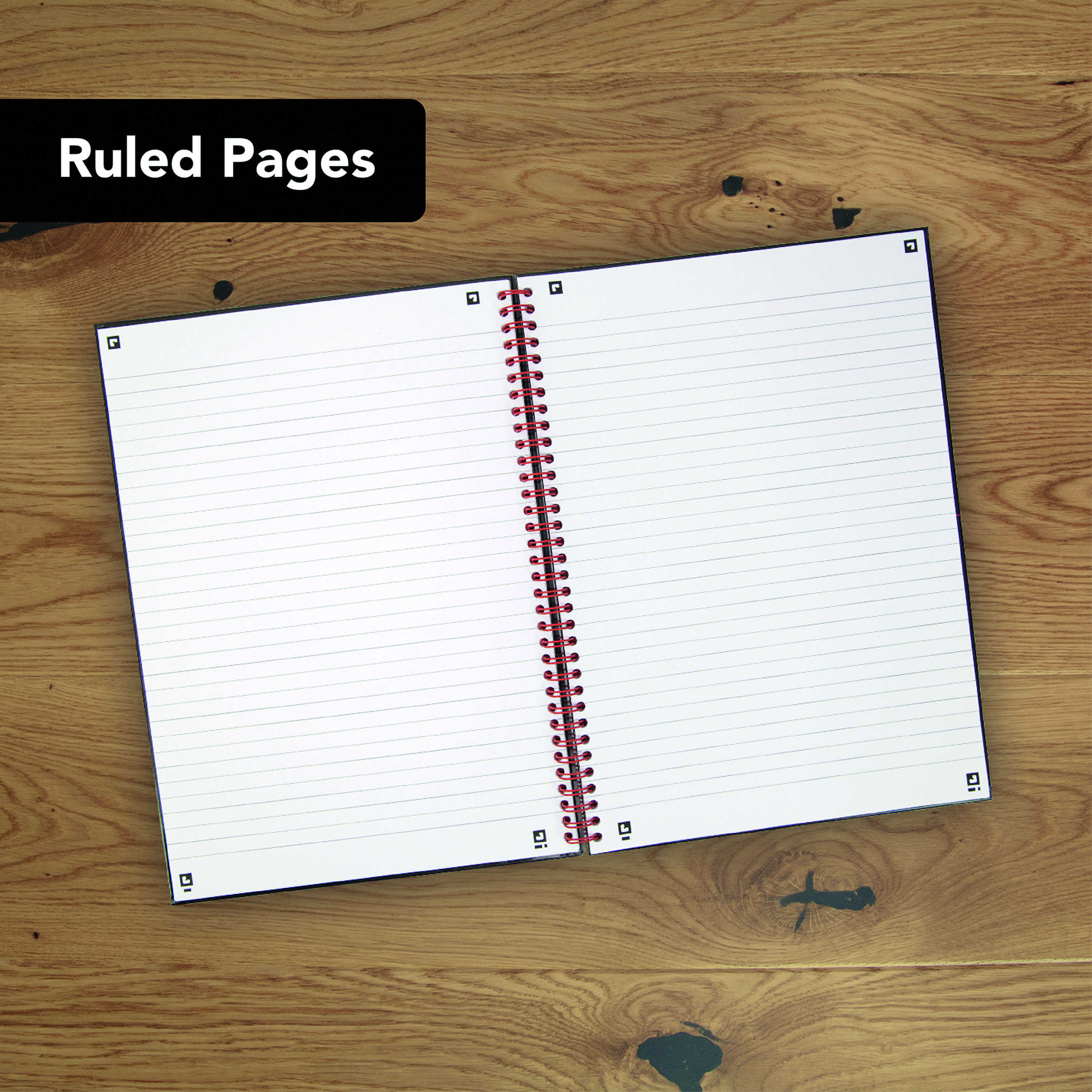 - Wire bound allowing the notebook to lay flat or fold back on itself